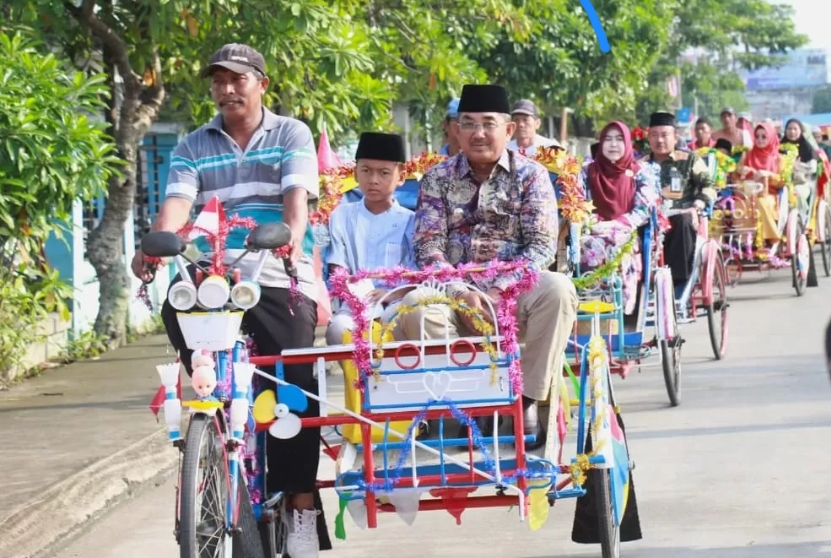 Bupati Naik Becak Menuju Lokasi Sunatan Massal; Sambut Hari Jadi Tanjab Barat