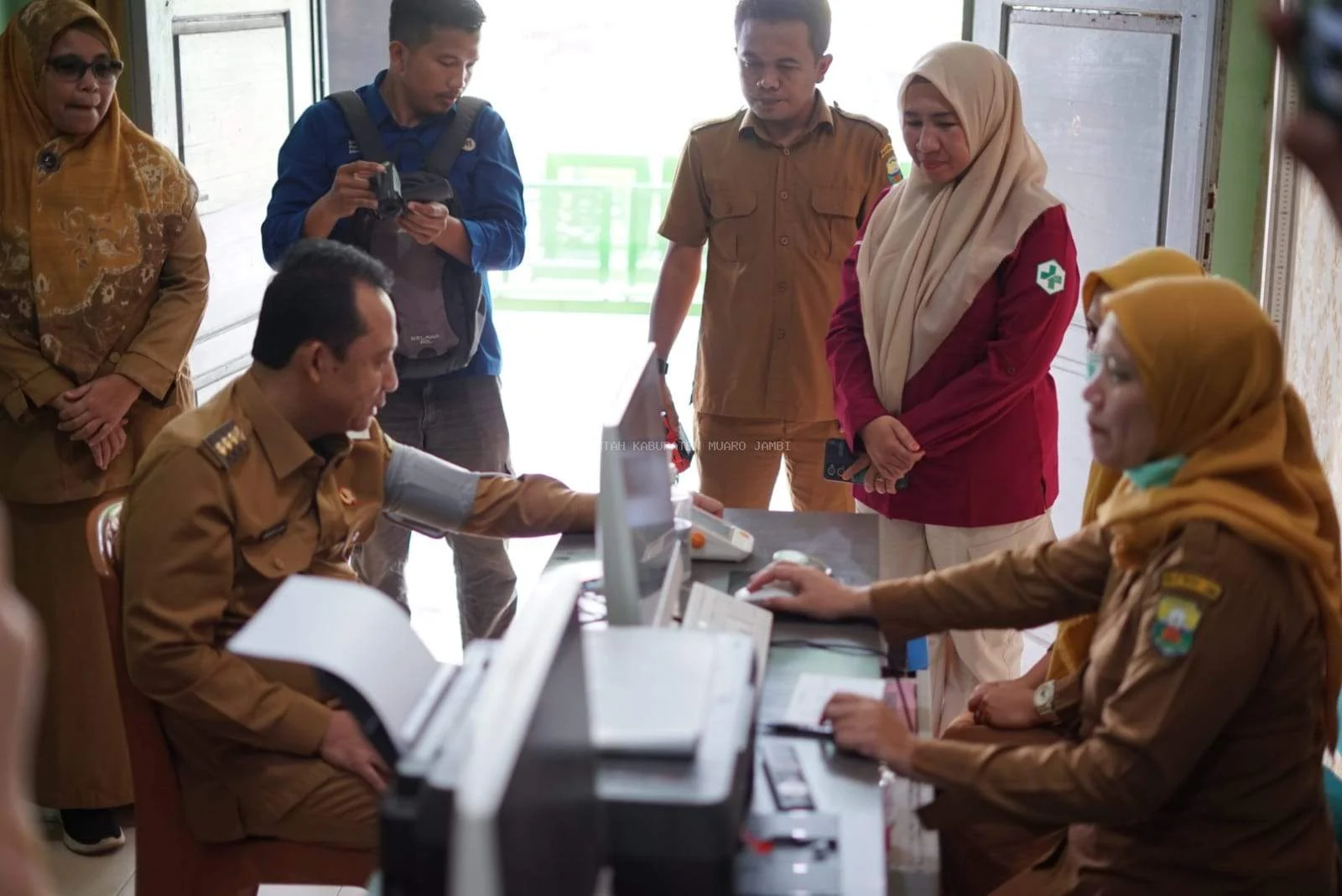 Memanfaatkan program milik Presiden Prabowo Subianto tersebut, Bupati Muaro Jambi Bambang Bayu Suseno melakukan pemeriksaan kesehatan di Pukesmas Muaro Kumpeh, yang bertepatan di hari ulang tahun Bupati yang akrab di sapa BBS ke 53, Senin 14 April 2025.