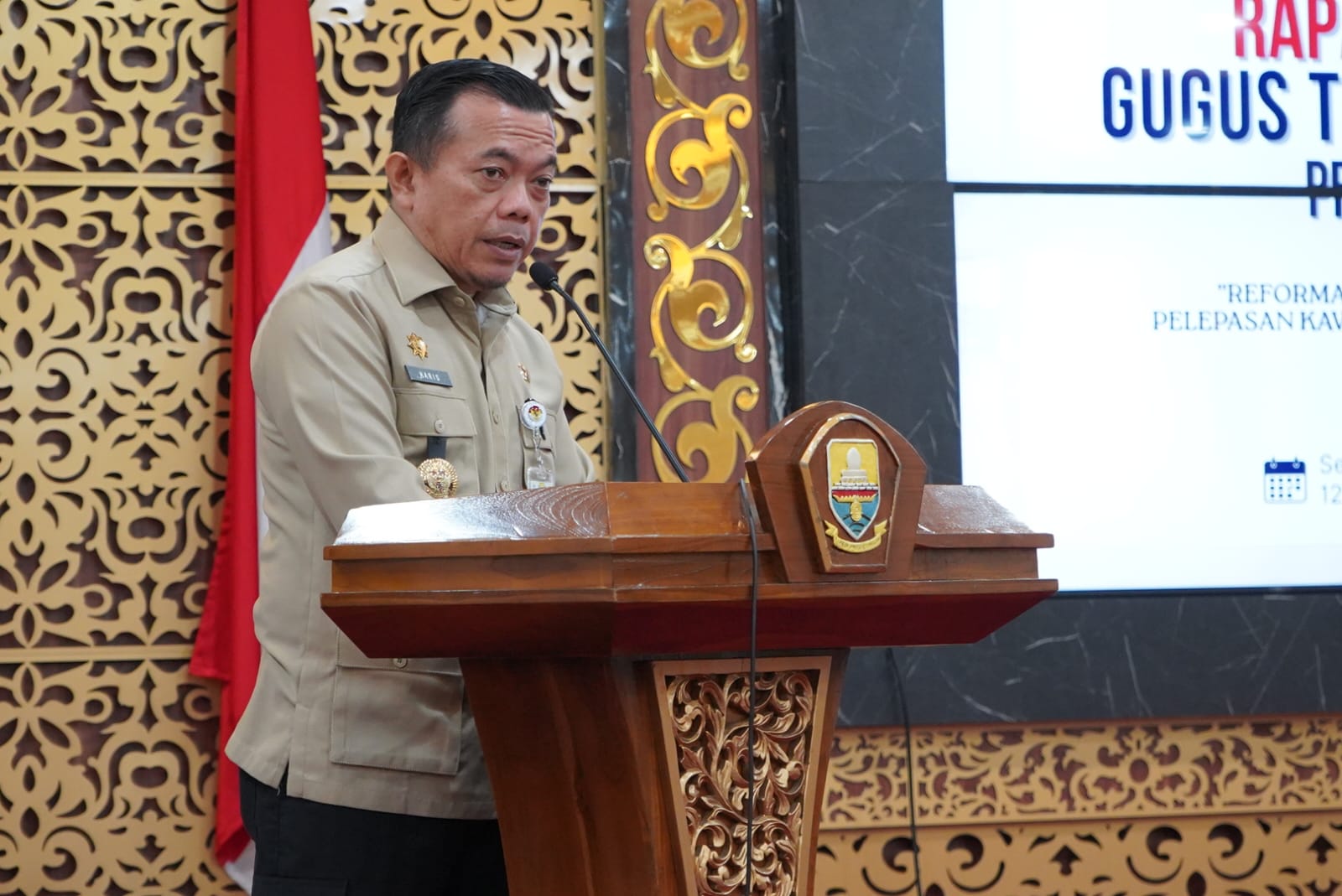 JAMBI,Pesisirtimur.com – Gubernur Jambi yang juga merupakan Ketua Gugus Tugas Reforma Agraria (GTRA) Provinsi Jambi Dr. H. Al Haris, S.Sos, MH sangat mengapresiasi dan mendukung menyukseskan Program Reforma Agraria, sebagai salah satu upaya untuk mengurangi ketimpangan/kesenjangan serta meningkatkan pemerataan pembangunan, demi meningkatkan kesejahteraan masyarakat. Apresiasi dan dukungan tersebut disampaikanya saat membuka Rapat Koordinasi Awal Gugus Tugas Reforma Agraria (GTRA) Provinsi Jambi Tahun 2025. Kegiatan yang bertema “Reformasi Agraria Mekanisme dan Strategi Percepatan Pelepasan Kawasan Hutan Dalam Rangka Mewujudkan Keadilan Di Provinsi Jambi” ini diselenggarakan di Ruang Pola Kantor Gubernur Jambi, Selasa (12/08/2025).