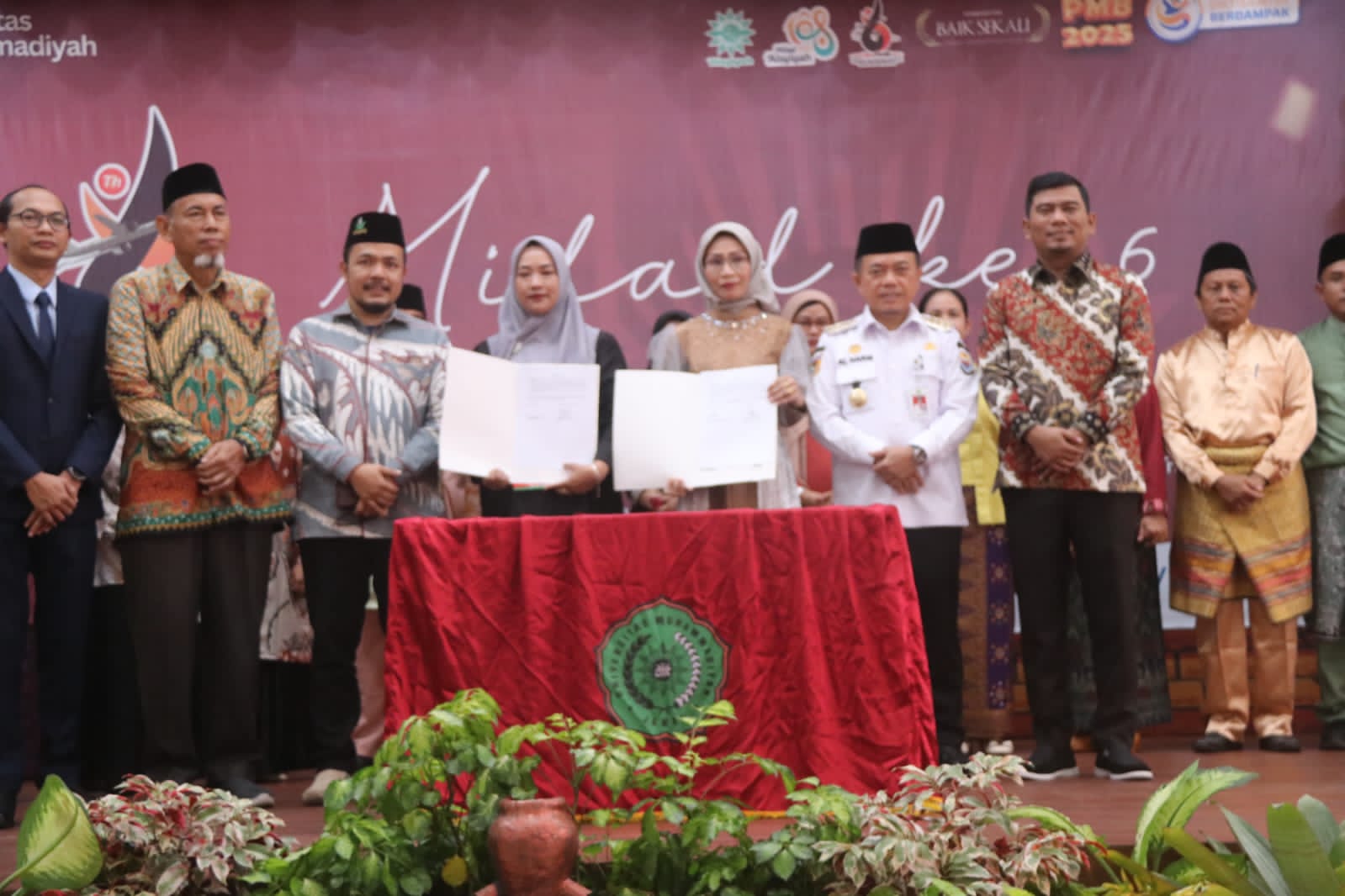 JAMBI,Pesisirtimur.com – Gubernur Jambi Dr. H. Al Haris, S,Sos, MH menyampaikan bahwa Universitas Muhammadiyah Jambi merupakan bagian dari pilar penting dalam dunia pendidikan tinggi di Provinsi Jambi. Tidak hanya mengusung nilai-nilai keislaman yang rahmatan lil ‘alamin, tetapi juga menunjukkan kiprah nyata dalam mendorong kemajuan ilmu pengetahuan, pembangunan karakter, dan transformasi sosial. Hal tersebut disampaikan Gubernur saat menghadiri acara Puncak Milad ke-6 Universitas Muhammadiyah Jambi dengan tema “Unggul dalam Kolaborasi, Maju dalam Inovasi”, bertempat di Auditorium Lantai 6 Universitas Muhammadiyah Jambi, Rabu (25/06/2025) pagi.