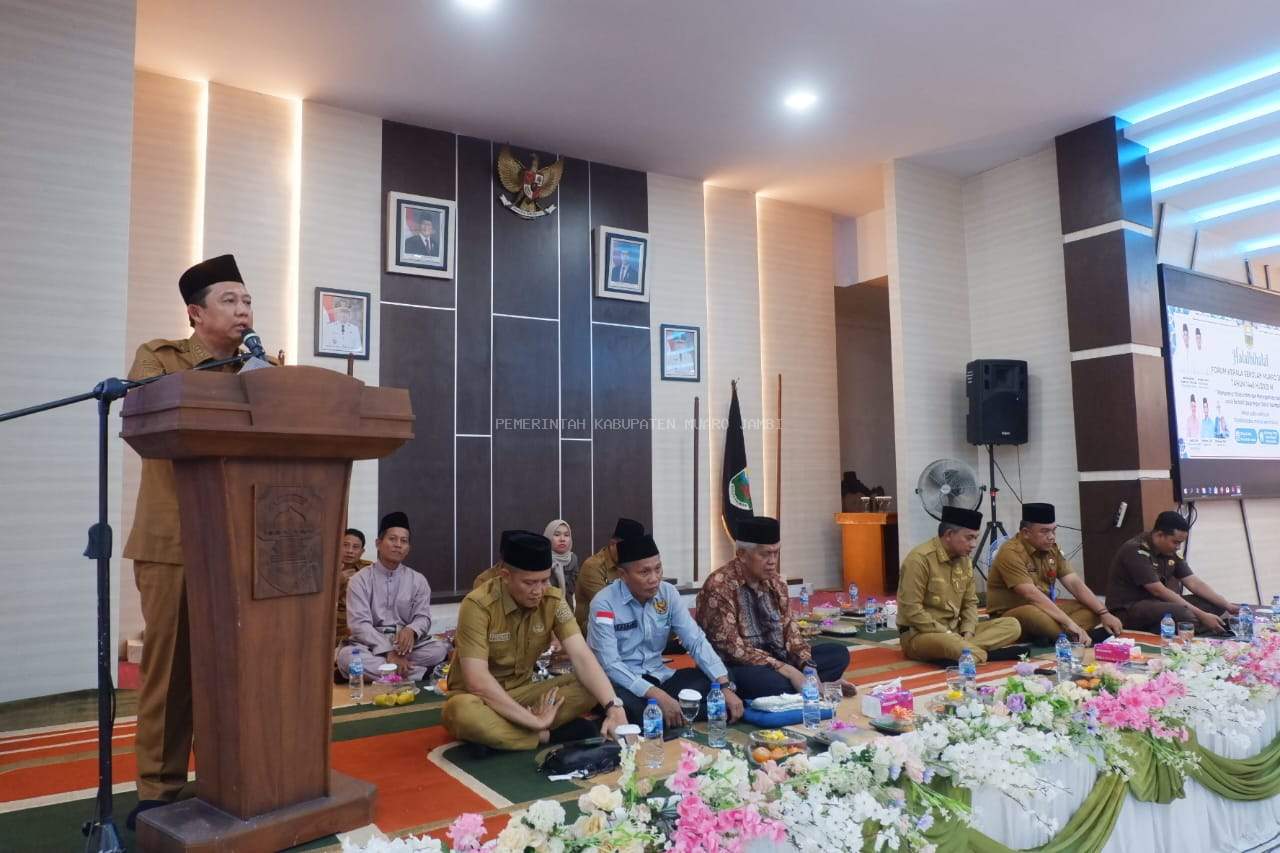 MUARO JAMBI – Bupati Kabupaten Muaro Jambi Bambang Bayu Suseno, SP, MM, M.Si hadiri Halal bi Halal bersama forum kepala sekolah di lingkup Disdikbud Kabupaten Muaro Jambi, diadakan di Ruang Nang Inang Kantor Bupati Muaro Jambi, Selasa (22/04/25).