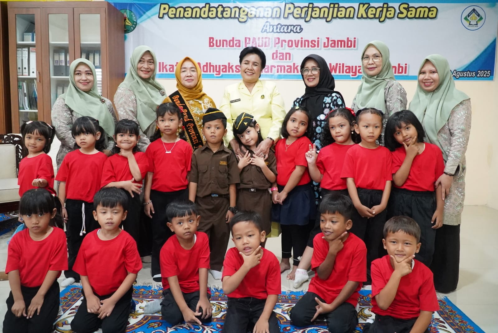 JAMBI, Pesisirtimur.com – Bunda PAUD Provinsi Jambi, Hj. Hesti Haris, dengan didampingi Ketua Pokja PAUD Provinsi Jambi, Hj. Iin Kurniasih Sudirman menghadiri kegiatan di Taman Kanak-Kanak Adhyaksa yang berada dibawah binaan Ketua Ikatan Adhyaksa Dharmakarini (IAD) Wilayah Jambi, Ny. Puspa Hermon. Kegiatan ini menjadi momentum penandatanganan Perjanjian Kerja Sama tentang Parenting Class antara Bunda PAUD Provinsi Jambi dan IAD Wilayah Jambi, dengan Nomor: 01/MOU/BP.Prov Jbi/VII/2025 dan 01/MOU/IAD.012.00/VII/2025, bertempat di TK Adhyaksa 1 Jambi, Rabu (13/08/2025) pagi.