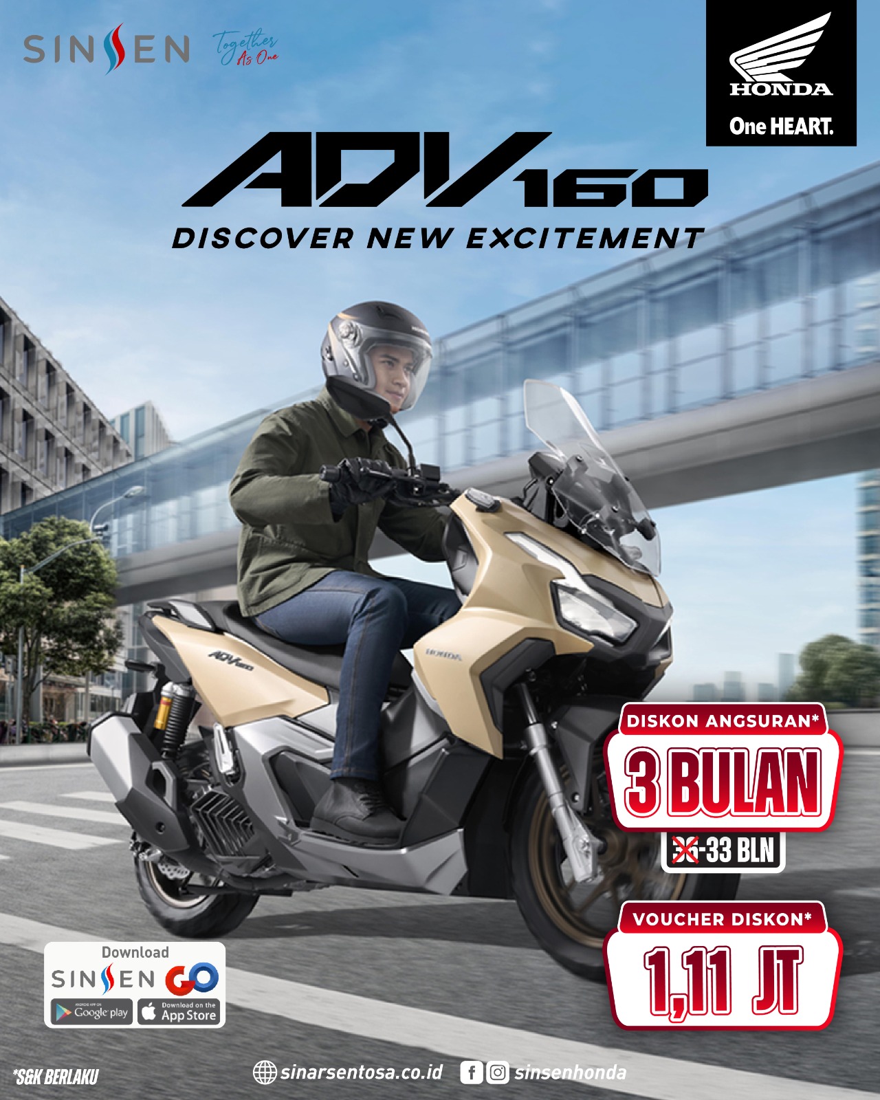 “Sinsen juga memberikan voucher diskon sebesar Rp 1,11 Juta untuk pembelian Honda ADV160, voucher diskon sebesar Rp 3 Juta untuk Honda CBR250RR, voucher diskon Rp 700 Ribu untuk pembelian Honda Vario160, serta masih banyak berbagai program menarik lainnya” ujar Hendy.