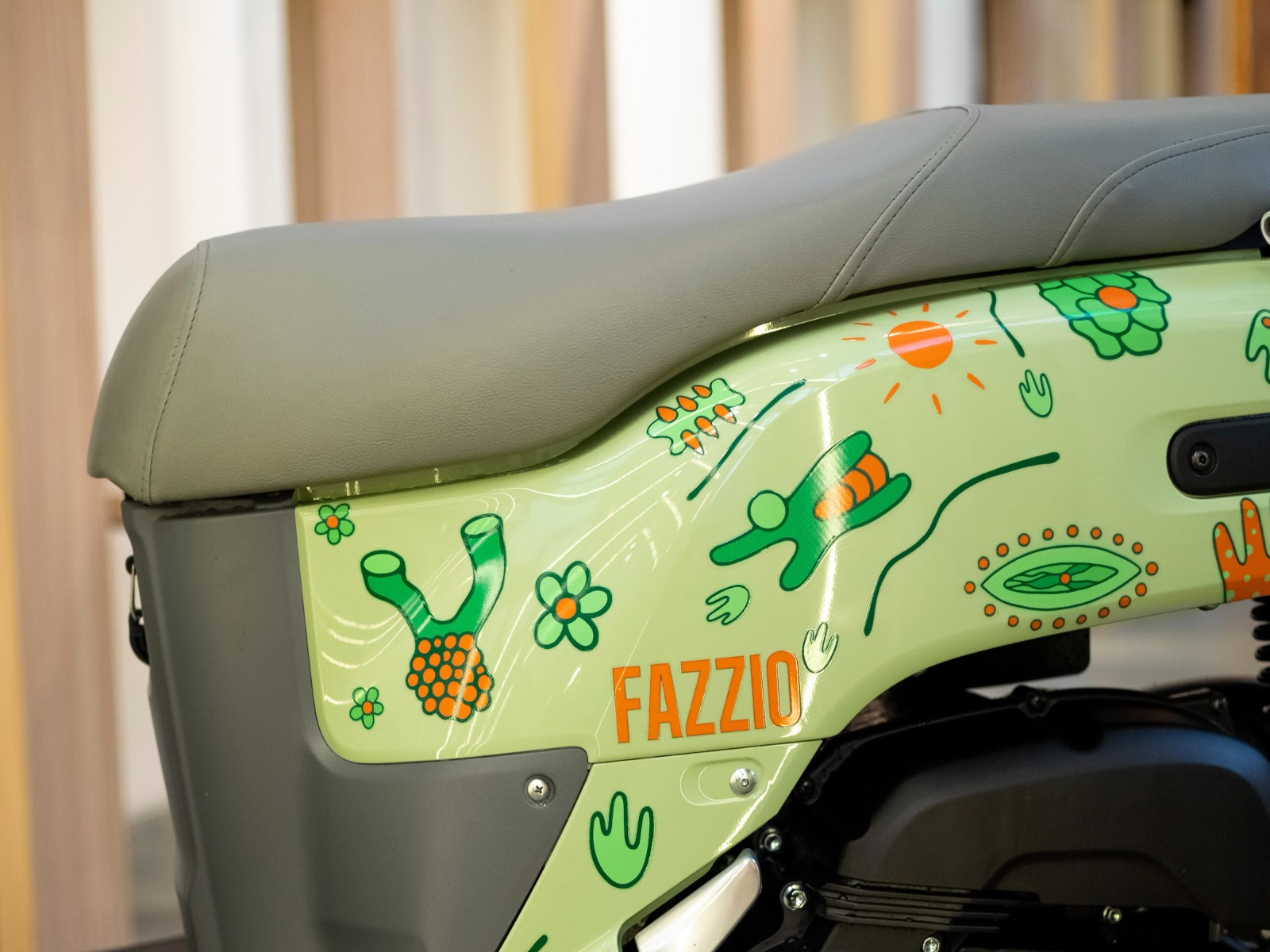 “Desain dari Fazzio Hybrid ini sendiri sebenarnya sudah punya memiliki vibes yang lembut dan juga elegan, terutama karena pilihan warnanya yang unik seperti warna pastel dari Sage Green dan kemudahan untuk dimodifikasi juga menjadi keunggulan motor ini sehingga saya menempelkan sticker secara acak di seluruh bagian yang terinspirasi dari mikroorganisme dan pastinya biayanya masih ramah di kantong karena total harga untuk stickernya hanya sekitar 200 ribuan serta terdapat beberapa part modifikasi lainnya juga yang dipasangkan untuk bisa sesuai dengan tren modifikasi skuter kekinian,” ungkap Sarif, pemilik Fazzio Hybrid Sage Green modifikasi.