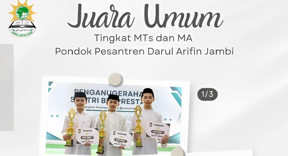 Prestasi ini merupakan hasil dari kerja keras dan dedikasi yang tinggi dalam menuntut ilmu di Pondok Pesantren Darul Arifin Jambi.