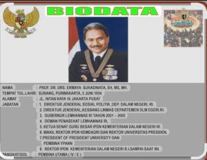 *Prof. Dr. Drs, Ermaya Suradinata, SH, MH, MS, adalah mantan Direktur Jenderal Sosial Politik Kementerian Dalam Negeri RI, dan Gubernur Lemhannas RI (2001-2005). Kini Ketua TIM Dewan Pakar BPIP RI. (Diskominfo Provinsi Jambi)