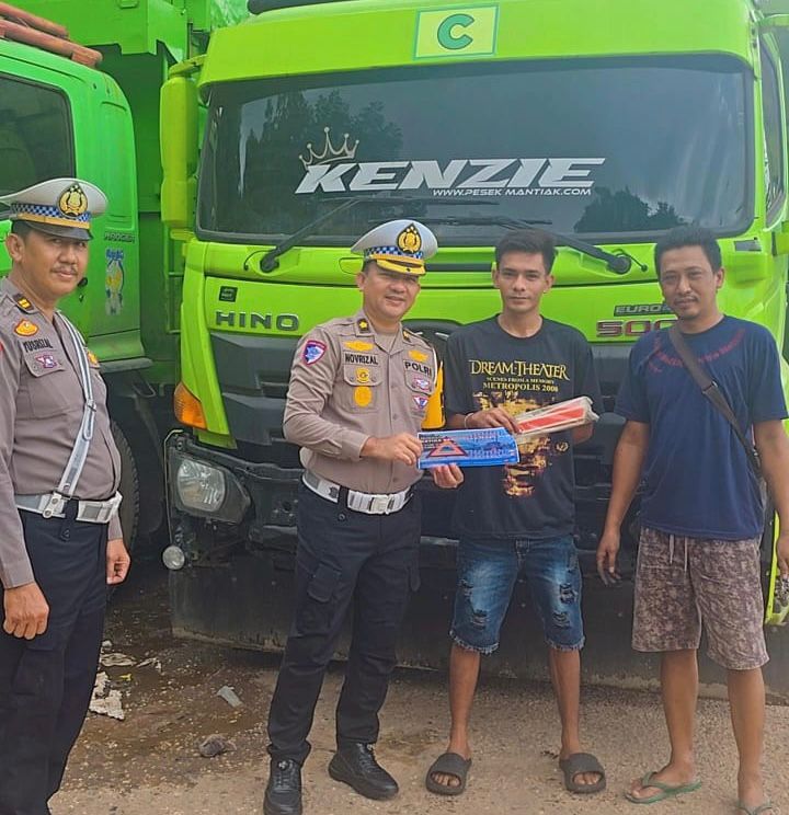 JAMBI,Pesisirtimur.com – Dalam rangka meningkatkan keselamatan di jalan oleh para pengendara kendaraan khusus truk angkutan barang, Kasatgas Preemtif Ops Zebra 2025 Polda Jambi Kompol Dr Novrizal dan Tim melakukan