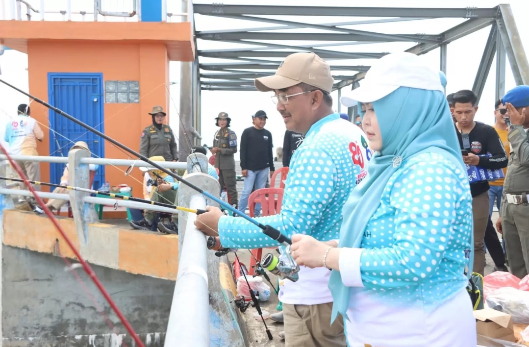 Kuala Tungkal, Dalam rangka memperingati Hari Ulang Tahun ke-80 Kemerdekaan Republik Indonesia dan Hari Jadi Kabupaten Tanjung Jabung Barat (Tanjab Barat), ke-60 Tahun 2025, Pemerintah Kabupaten Tanjab Barat menggelar lomba mancing antar Forkopimda dan istri Kepala OPD lingkup Pemkab Tanjab Barat, Sabtu (02/8/2025), bertempat di Pelabuhan Roro Kuala Tungkal.