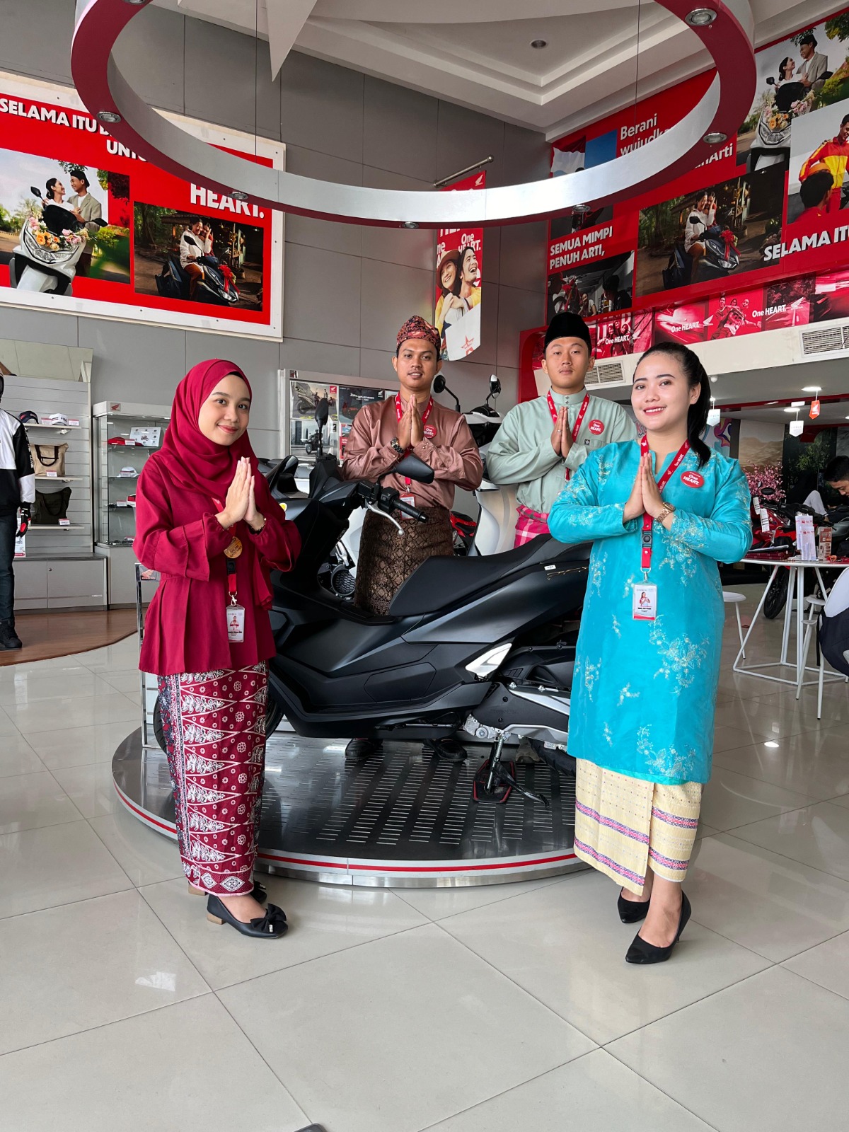 Mengusung semangat tema peringatan tahun ini “Kolaborasi untuk Mewujudkan Kota Jambi Bahagia”, karyawan dealer Honda tampil memikat dengan balutan busana adat Melayu. Karyawan wanita anggun mengenakan baju kurung, sementara karyawan pria tampak gagah dalam balutan teluk belango, menciptakan suasana khas Melayu yang memperkuat identitas lokal dalam lingkungan dealer.
