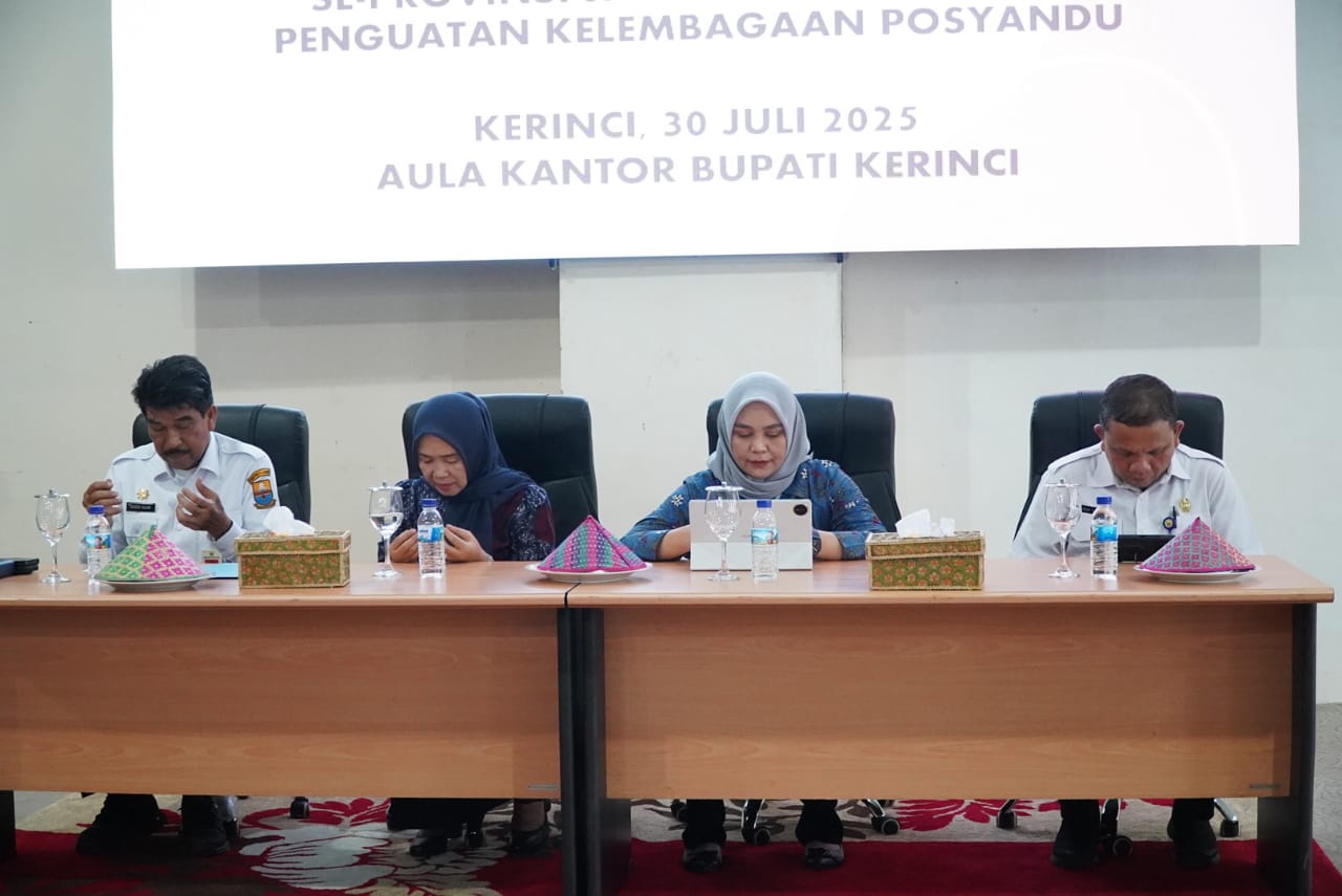 KERINCI, Pesisirtimur.com – Tim Pembina Posyandu Provinsi Jambi menggelar Rapat Kerja (Raker) bersama TP Posyandu Kabupaten/Kota se-Provinsi Jambi dalam rangka penguatan kelembagaan Posyandu, sebagai bagian dari strategi meningkatkan kualitas layanan kesehatan berbasis masyarakat. Acara tersebut berlangsung di Aula Kantor Bupati Kerinci, Kabupaten Kerinci, Rabu (30/07/2025).