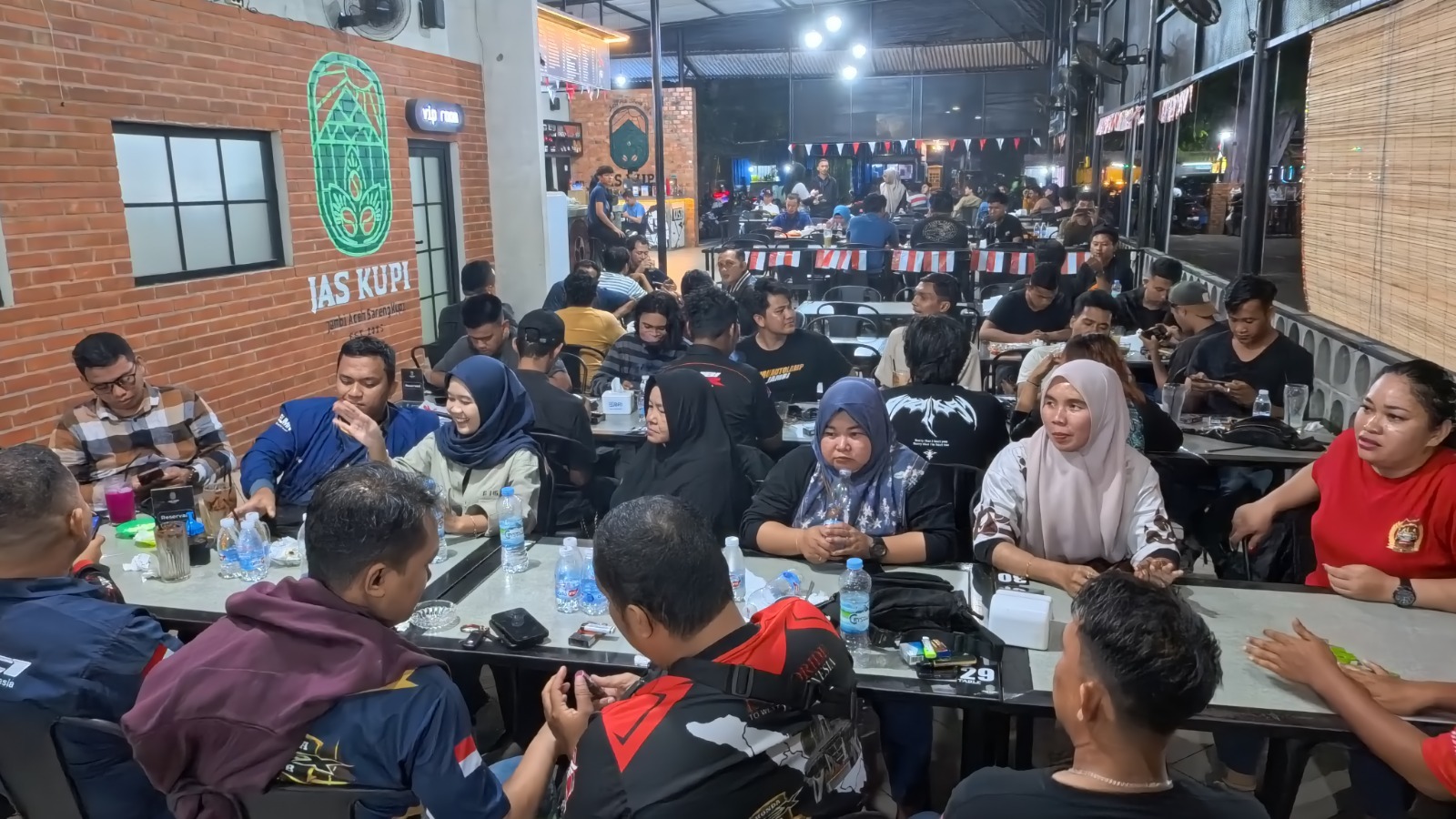 Kegiatan dimulai dengan titik kumpul di Sinsen Safety Riding Center Pall 6 pada pukul 17.00 WIB. Sebelum memulai perjalanan, peserta mendapat pembekalan edukasi safety riding sebagai wujud komitmen bersama terhadap keselamatan berkendara di jalan raya. Setelah itu, rombongan memulai rolling city menuju Café Jas Kupi sekitar pukul 17.30 WIB. Sesampainya di lokasi, suasana semakin hangat dengan sajian makan malam bersama, dilanjutkan sosialisasi aturan permainan dan pembentukan tim oleh juri turnamen Mobile Legends. Pertandingan berlangsung sengit dan seru, penuh antusiasme dari seluruh peserta yang saling berkompetisi dengan sportivitas tinggi.