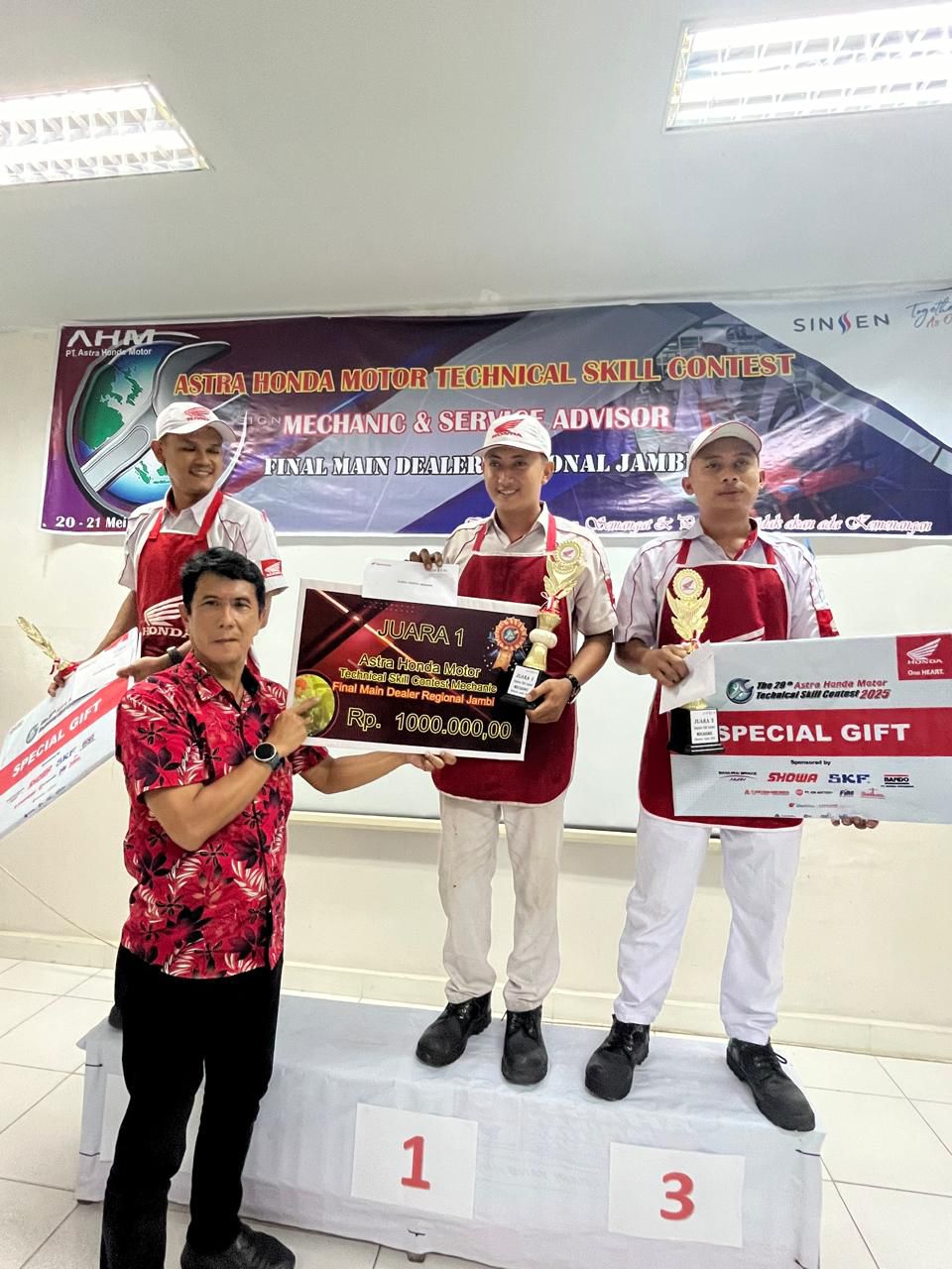 JAMBI, Pesisirtimur.com – PT Sinar Sentosa Primatama (Sinsen) Main Dealer sepeda motor Honda di Provinsi Jambi, menyatakan dukungan penuhnya kepada dua perwakilan terbaik dari Jambi yang akan berlaga di ajang nasional Astra Honda Motor Technical Contest (AHMTC) 2025, yang akan digelar pada 23–25 Juli 2025 di Safety Riding and Training Center (SRTC), Jakarta.