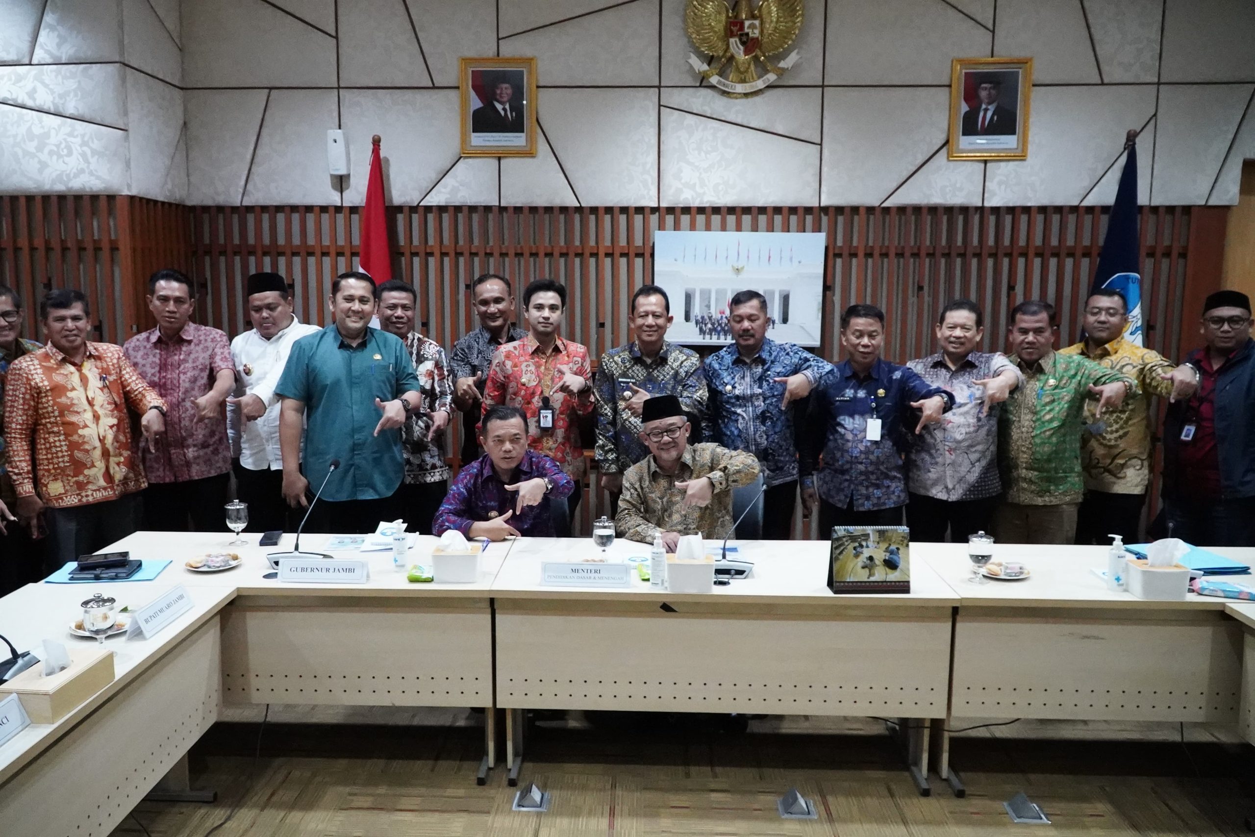 Tampak diantaranya Bupati Batang Hari Fadhil, Bupati Sarolangun Hurmin, Wakil Wali Kota Jambi Diza Hazra Aljosha dan lainnya.