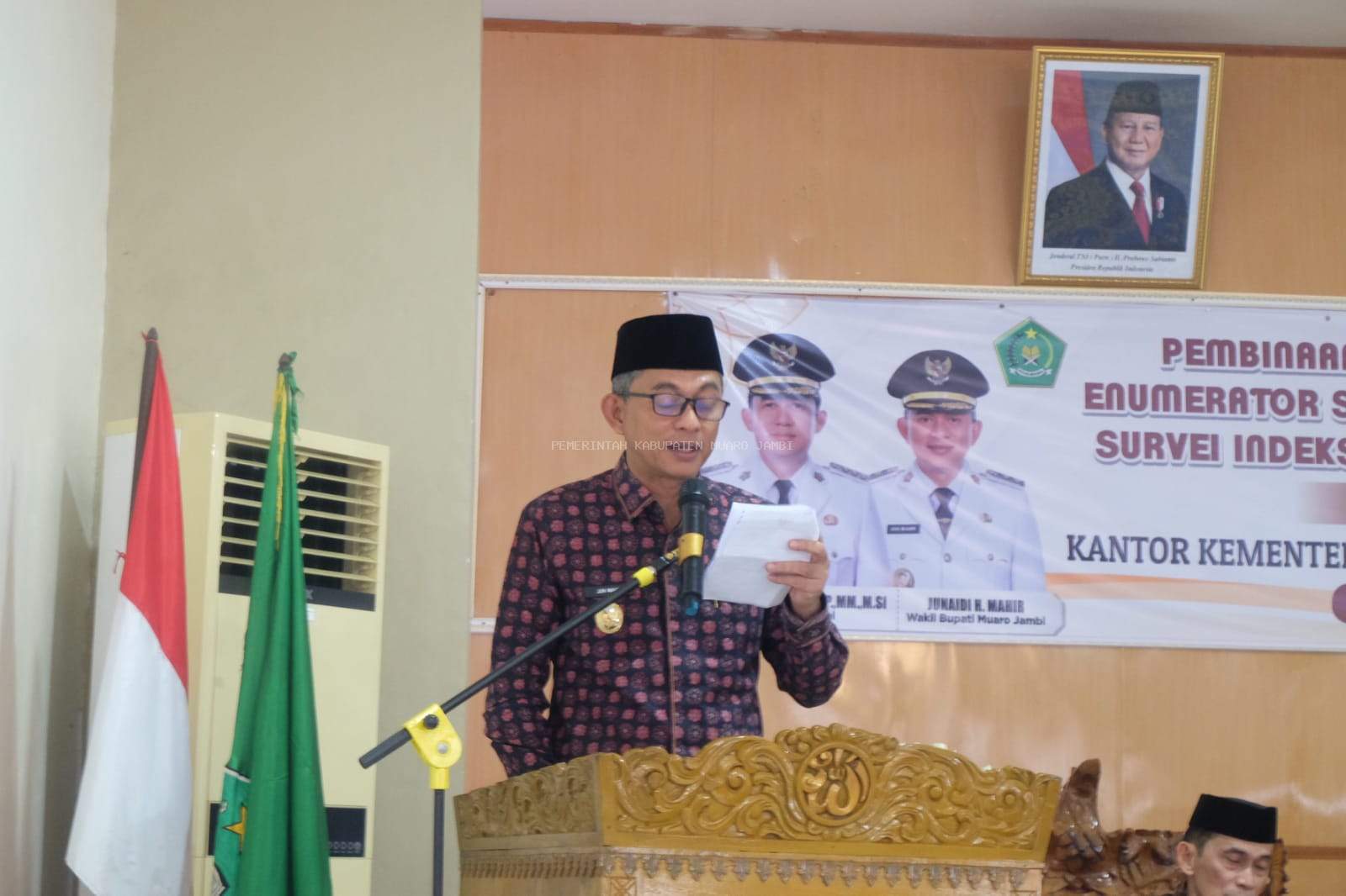 MUARO JAMBI – Wakil Bupati Kabupaten Muaro Jambi Junaidi H. Mahir membuka kegiatan rapat Pembinaan Narahubung dan Calon Enumerator Survei serta Rapat Persiapan Survei Indeks Kerukunan Umat Beragama Tahun 2025.