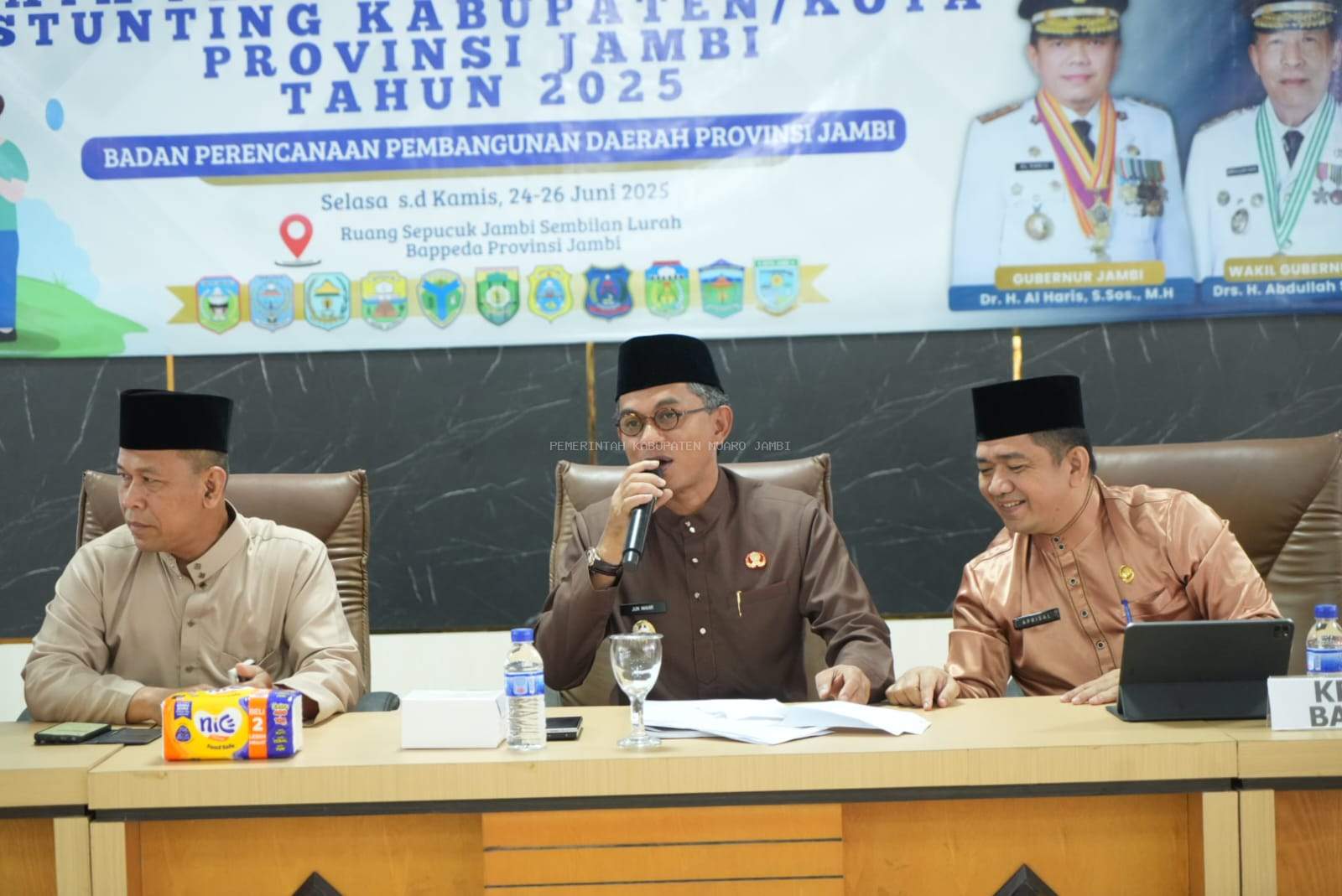 MUARO JAMBI – Wakil Bupati Muaro Jambi, Junaidi Mahir Menghadiri acara Pra Penilaian Kinerja Upaya Percepatan Penurunan Stunting Kabupaten/Kota Provinsi Jambi Tahun 2025, Selasa(24/06).