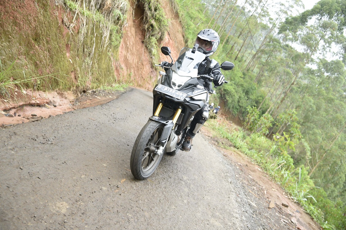 Ketika melintasi jalan bergelombang atau rusak, posisikan tubuh sedikit berdiri di atas footstep dan tekuk siku. Teknik ini akan membantu menyerap guncangan dan menjaga keseimbangan motor.